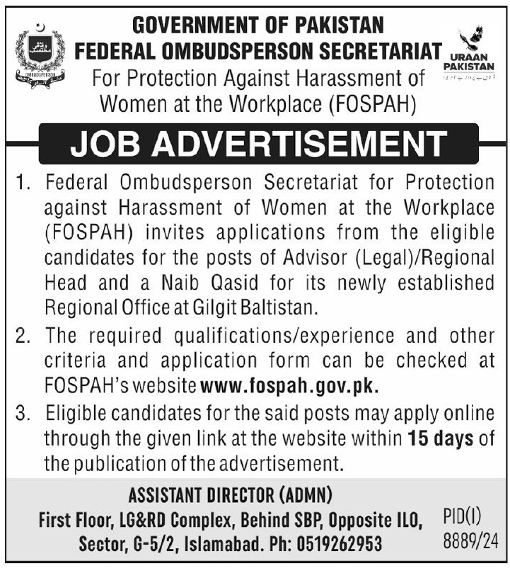 Join the Federal Ombudsman Secretariat as part of our Field Staff team in Islamabad. Responsibilities include processing complaints, correspondence handling, document delivery, and supporting administrative tasks. We welcome both men and women with Intermediate education to apply. This role focuses on ensuring prompt, accurate, and courteous service across various public-facing functions.